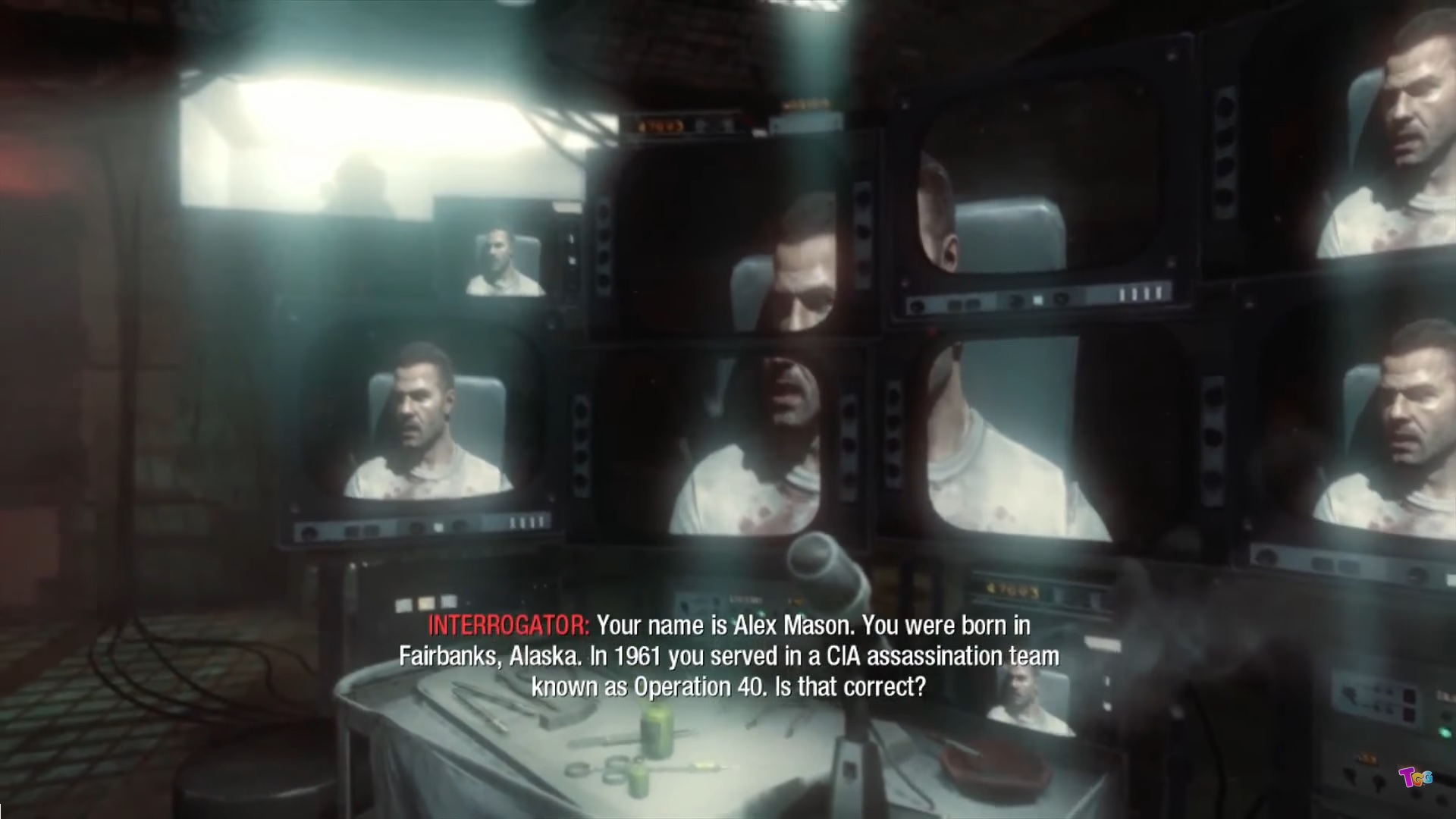 Plusem recenzowanej części jest sposób prowadzenia fabuły. Po uruchomieniu gry, w interaktywnym menu, postać gracza jest przywiązana do krzesła elektrycznego i przesłuchiwana w zadymionym pokoju. Wokół niego ustawione są telewizory wyświetlające sekwencje fragmentów wydarzeń. Zniekształcony głos śledczego dobiegający z głośników stara się wydobyć z bohatera informacje o znaczeniu tajemniczego ciągu cyfr, który ma istotne znaczenie dla fabuły. Aby rozwikłać ten sekret, jesteśmy prowadzeni przez kolejne misje, będące retrospekcją życia Mansona - żołnierza do zadań specjalnych CIA. W przedstawione wydarzenia wplątany jest również jeden z bohaterów piątej części - Viktor Raznow. Ta postać będzie przewijać się przez całą grę i odegra w niej jedną z kluczowych ról.